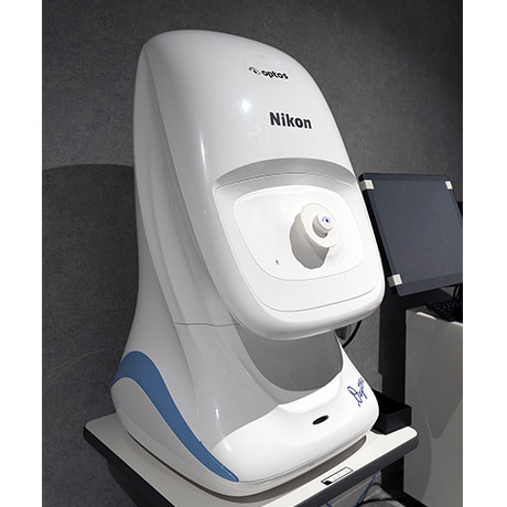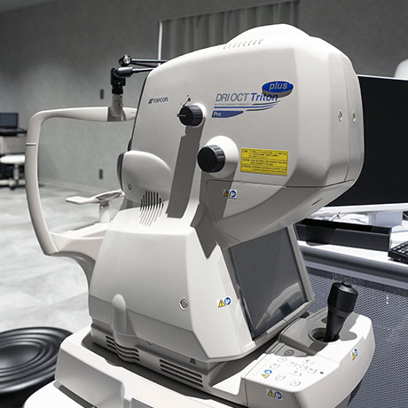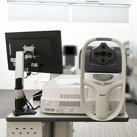 散瞳なしで、眼底を広範囲かつ高解像度で撮影できる装置です。糖尿病網膜症や網膜裂孔の早期発見に有効です。